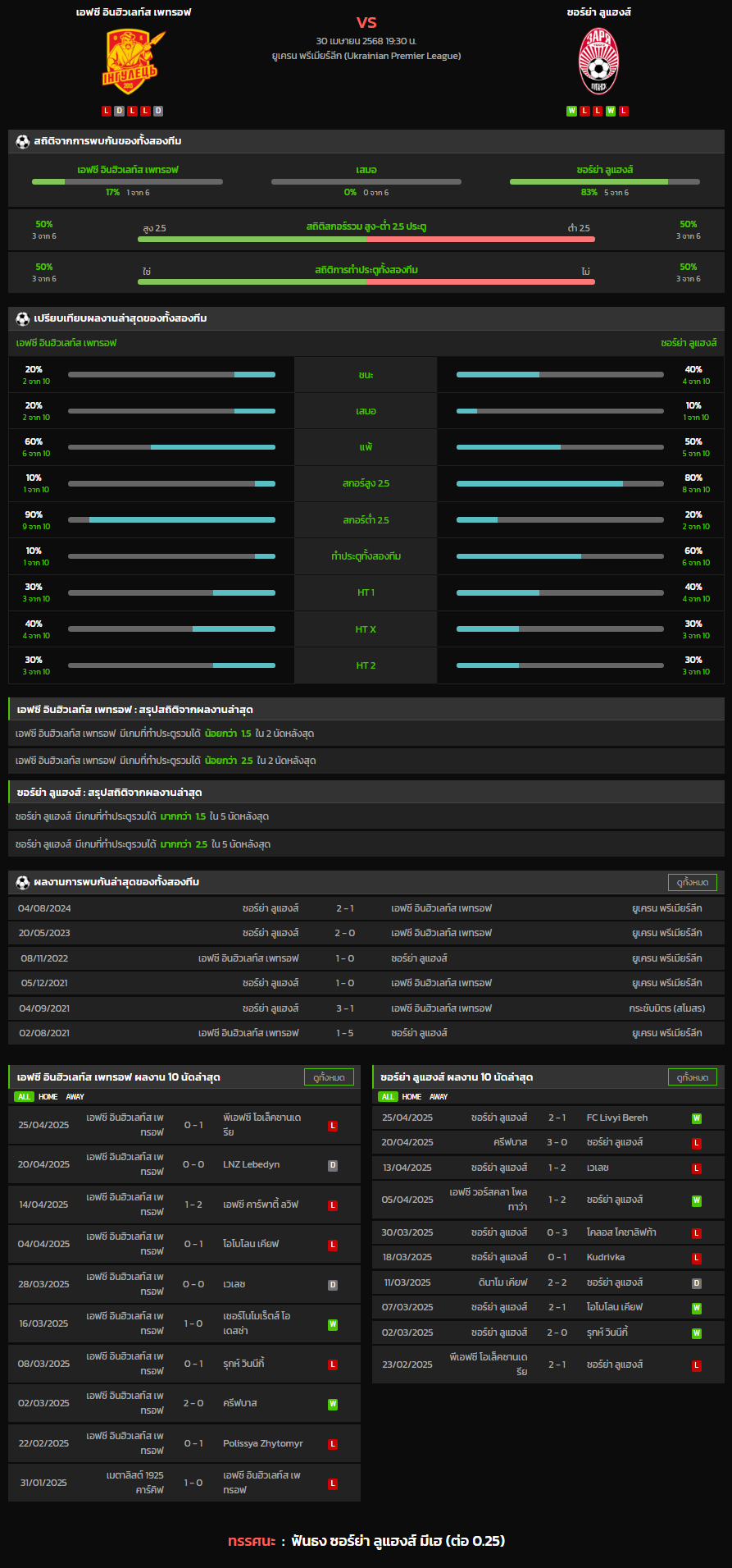 วิเคราะห์บอล [ ยูเครน พรีเมียร์ลีก 2024-25 ] เอฟซี อินฮิวเลท์ส เพทรอฟ VS ซอร์ย่า ลูแฮงส์